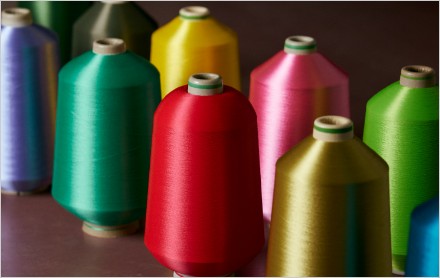 近年ポリエステル糸の需要が急伸し、アバレルメーカーや、織マーク商社等の要望に応えて組合では、平成8年からポリエステル原着糸の研究、開発に着手平成9年に商品化した。