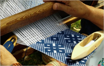 当時の細巾織機は、はたご大工が作った木製の枠に京都の小森大助氏が考案したといわれる框を取り付けた手織り機で、こうした織機の修繕などははたご大工が引き受けていた。
