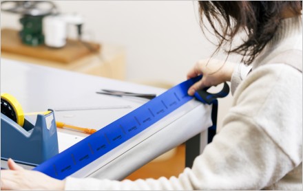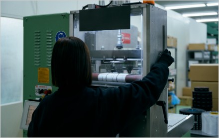 希望のカットをしたり、ロール、板巻きなどをして、最終工程袋詰めをする