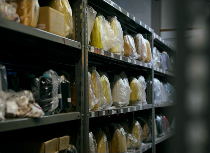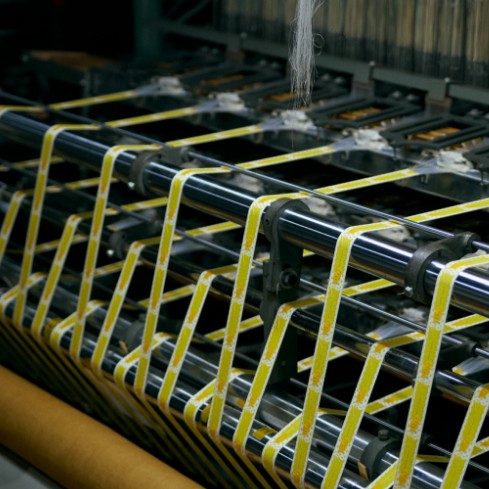 原材料である原糸を組合が一括購入し、組合員企業へ販売することで、コスト削減と安定供給を実現。また、組合員専用の緯(よこ)糸の企画・販売も行い、高品質な製品づくりを支援しています。